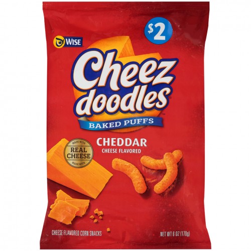 Wise Cheez Doodles Baked Puffs Cheddar Cheese Flavored Corn Snacks 6 Oz Bag